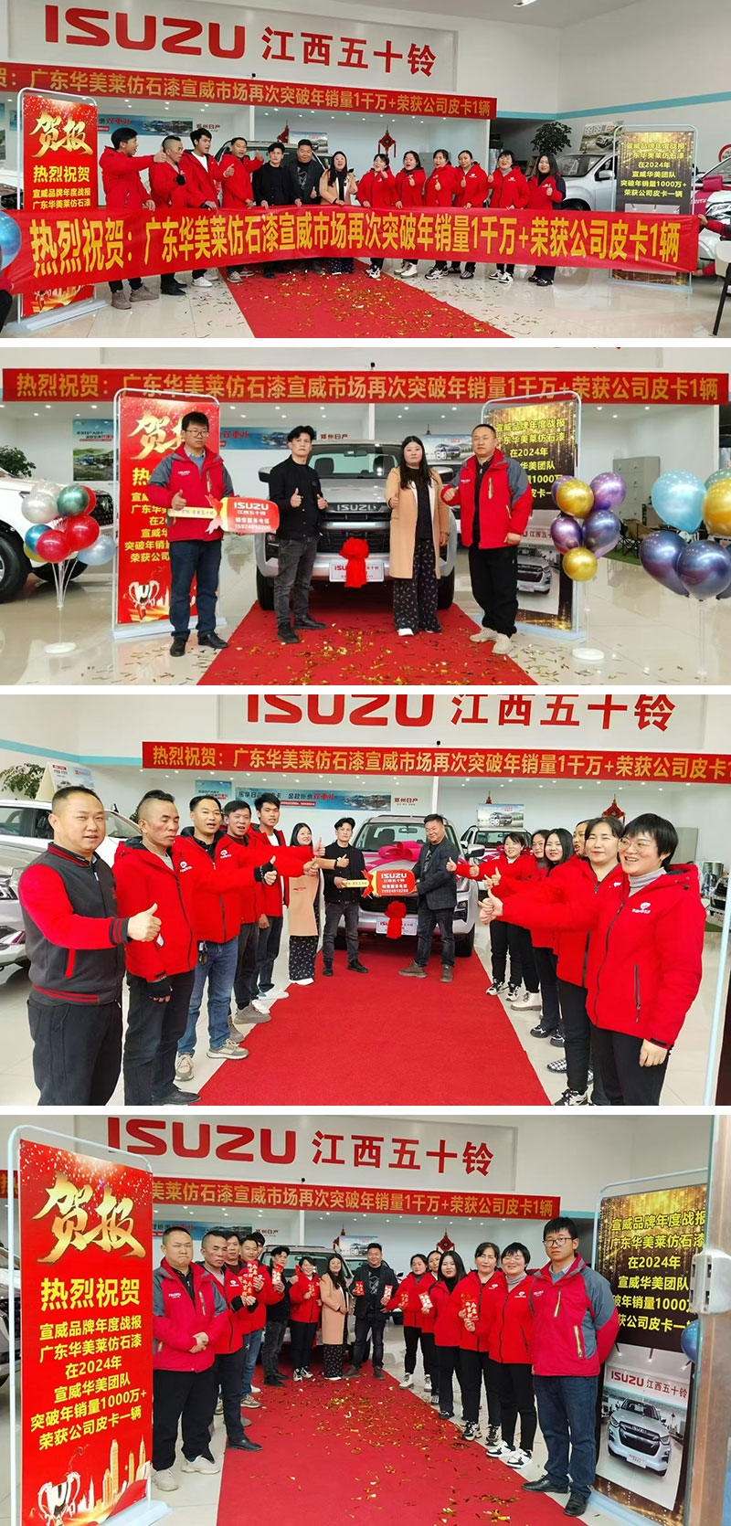 為了表彰這份突出貢獻,廣東華美萊公司總部決定獎勵宣威華美萊團隊皮卡車一輛。這不僅是一份物質獎勵,更是對大家辛苦付出的認可與肯定。正是因為大家齊心協力,眾志威誠,我們才能在激烈的市場競爭中站穩腳跟取得如今的成績,這份榮譽實至名歸,希望大家能繼續保持。